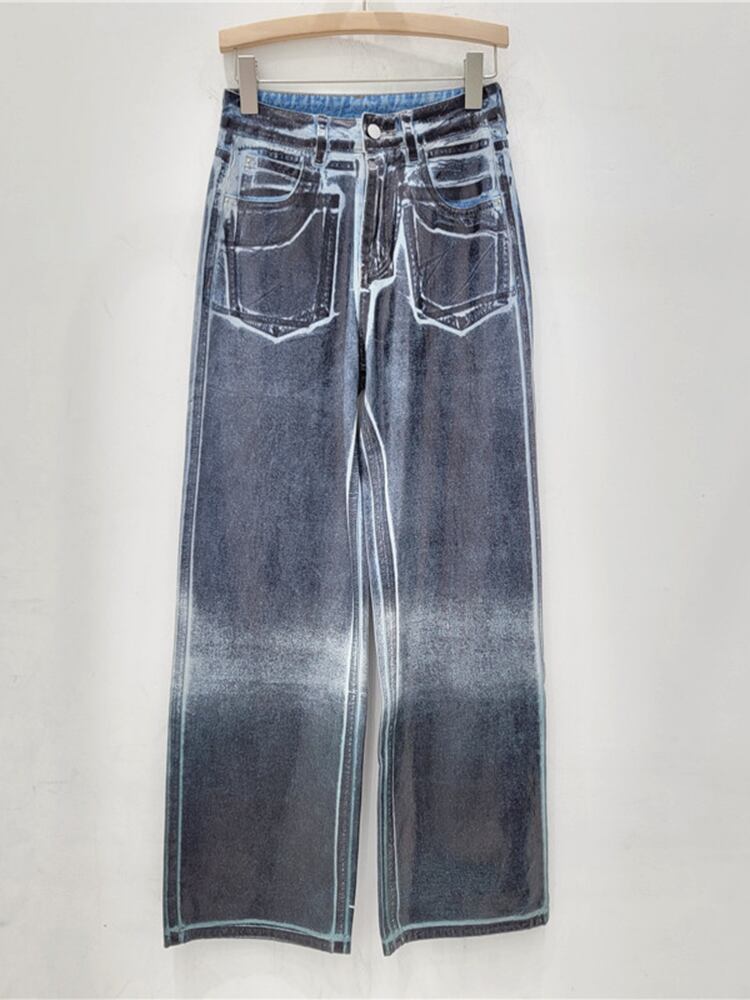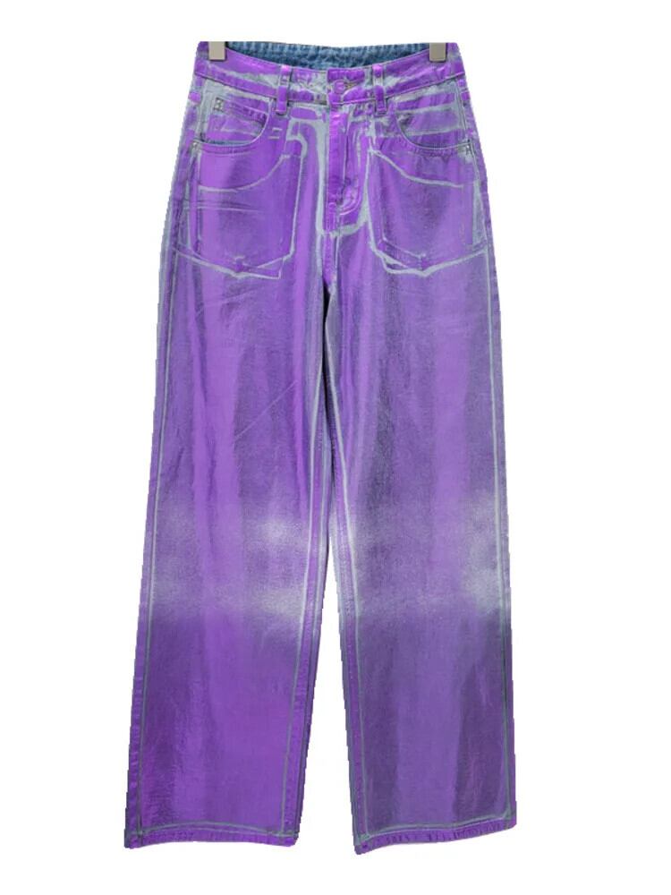 [EWQ] 高級グラデーション タイダイ パーソナライズされた多用途黒紫ロング パンツ ストレートレッグ ジーンズ 2024 春夏 16U8743 ブラック スプリング 春物 サマー 夏物 パープル
