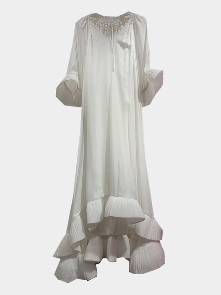 [EWQ] 気質アップ プリーツ レース フレア 半袖 ルーズ ドレープ裾 フリル エッジ ドレス レディース 2024 春夏 16U9673 ショート レッド ハーフスリーブ スプリング 春物 サマー 夏物