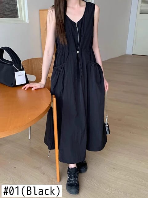 [EWQ] Chic's ワンピース ジッパー巾着 大きめポケットベスト ロングドレス レディース 2024春夏 16U9476 スプリング 春物 サマー 夏物