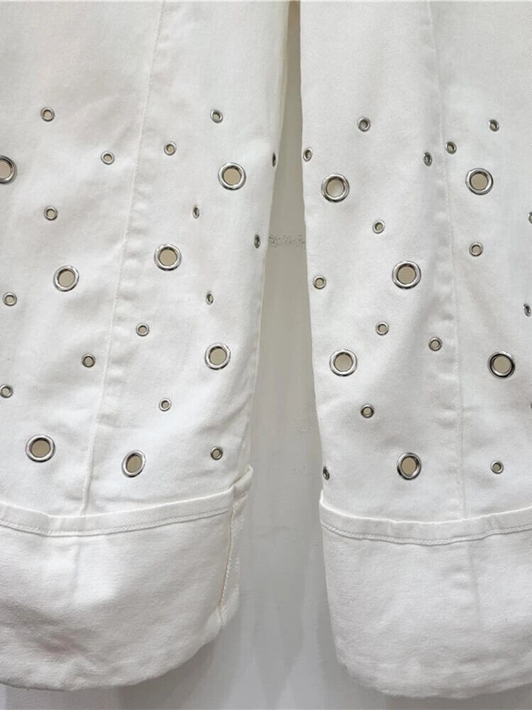 [EWQ] ストリート ワイドレッグ ホール スプライス フリップエッジ ルーズ ストレート クォーター ジーンズ レディース 2024 春夏 16U9671 スプリング 春物 サマー 夏物 ワイドパンツ