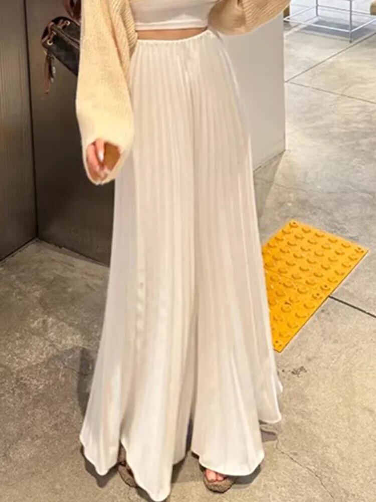 [EWQ] 無地 パンツ ウエスト プリーツ ゆったり ワイドレッグ パンツ レディース 2024 春夏 16U9286 スプリング 春物 サマー 夏物 ワイドパンツ ソリッドカラー