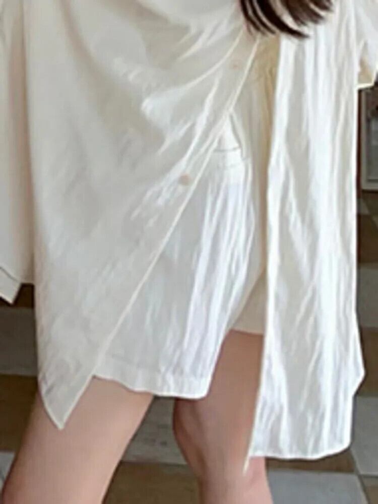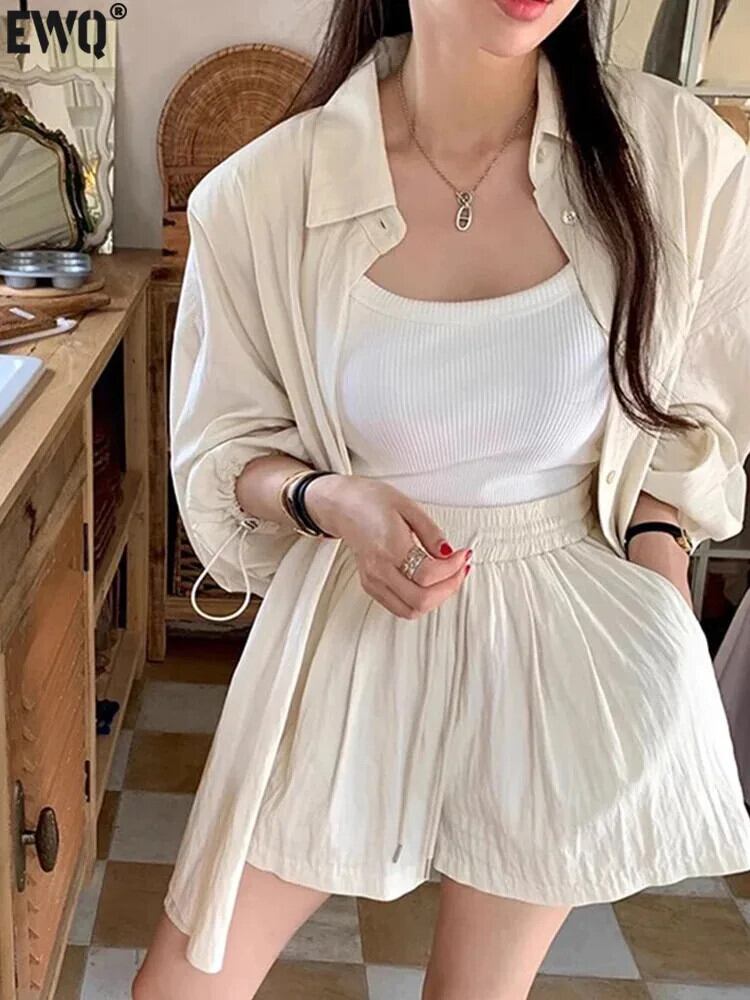 [EWQ] バックスリット 長袖シャツ トップス ウエストワイドレッグショーツ パンツ 2点セット レディース 2024春夏 16U9322 ロング スプリング 春物 サマー 夏物 ブルマー ワイドパンツ