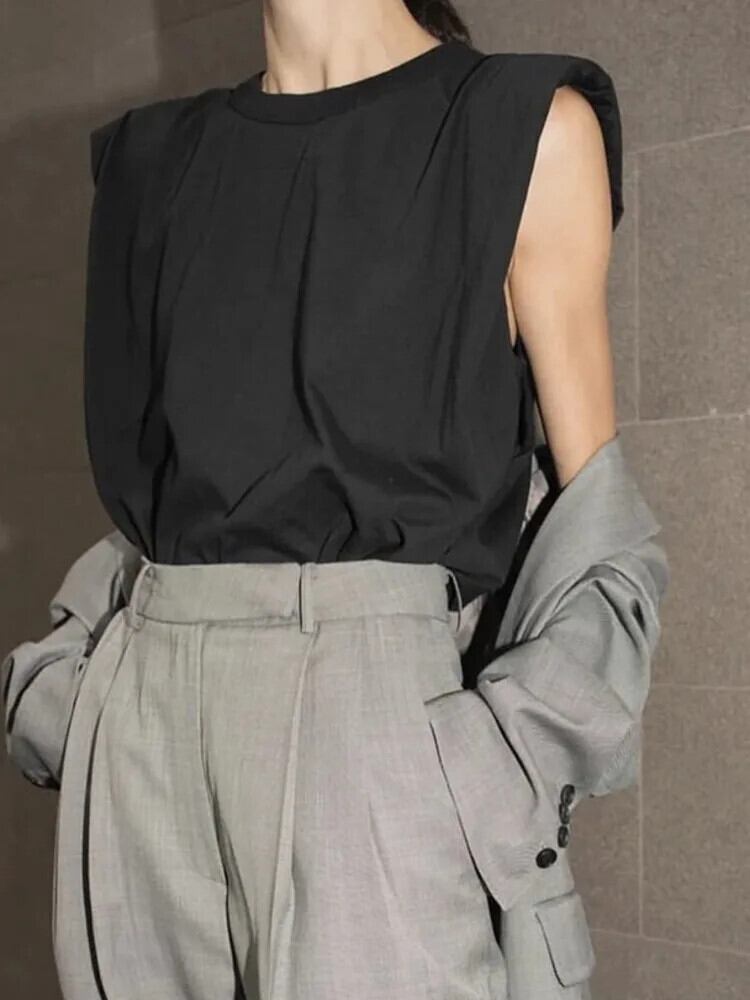 [EWQ] スタイル T シャツ レディース O ネック ノースリーブ ソリッド ミニマリスト 万能 トップス 2024 夏 16O961 サマー 夏物 Oネック Tシャツ ソリッドカラー