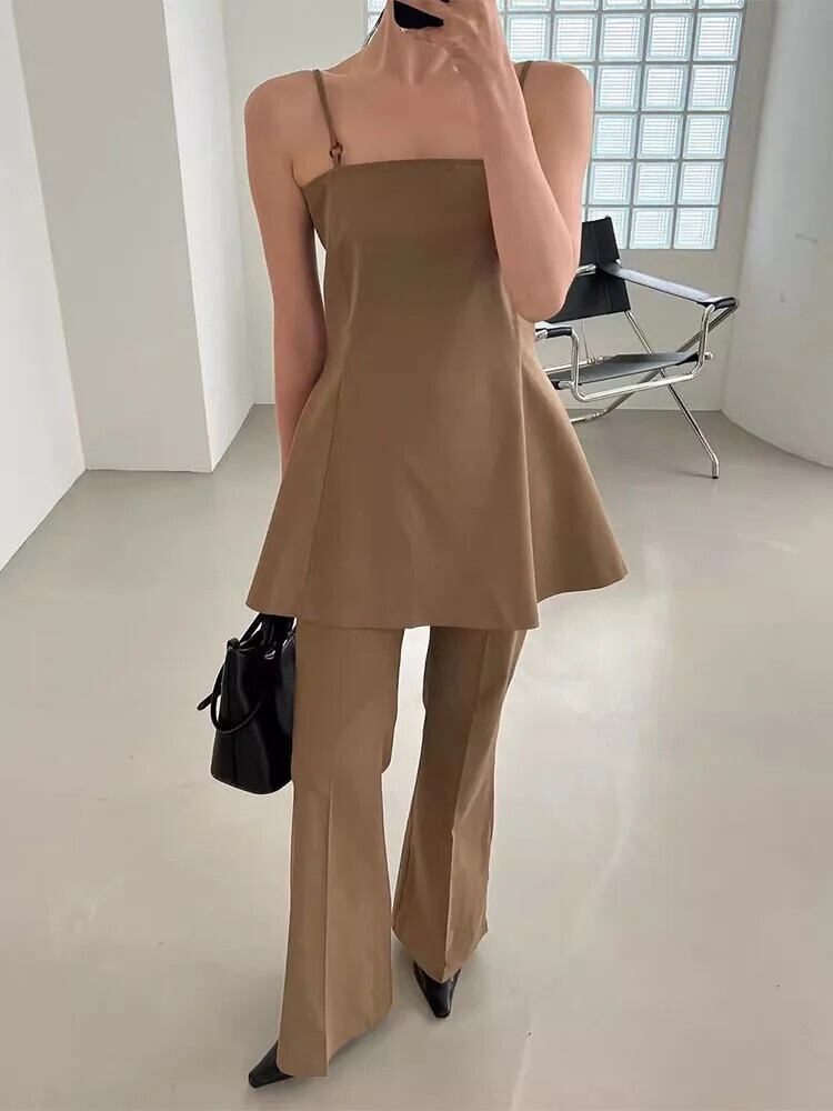 [EWQ] シック ストラップレス タンクトップ ウエストスリム フレア フルレングス パンツ 2点セット レディース 2024春夏 16U9478 レッド スプリング 春物 サマー 夏物