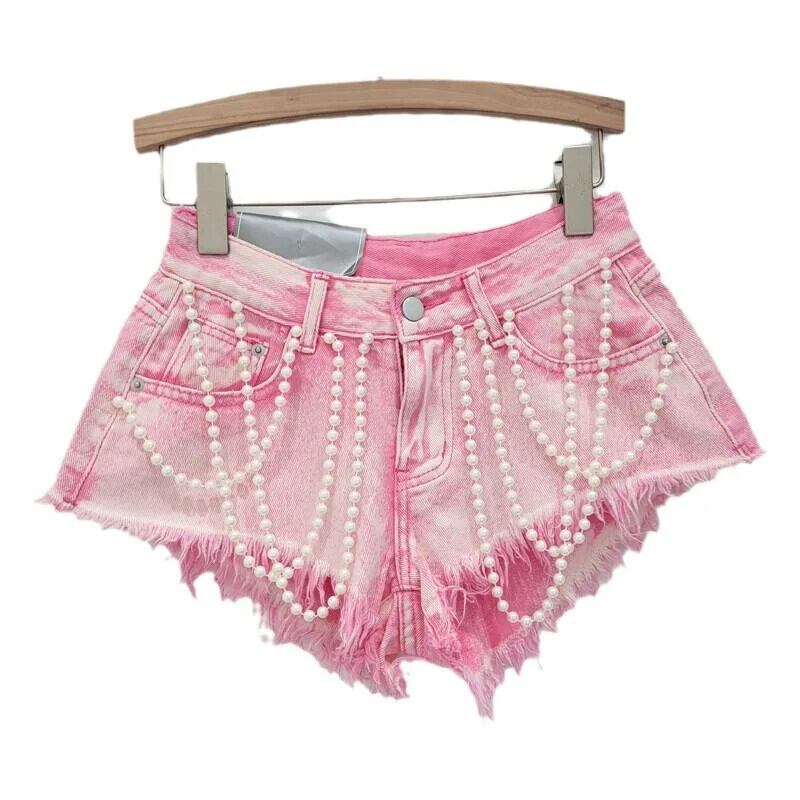 [EWQ] ボトムクリック ショートジーンズ ファー裏地 脚口ビーズ オールマッチショーツ 2024夏 GZ106 サマー 夏物 ブルマー