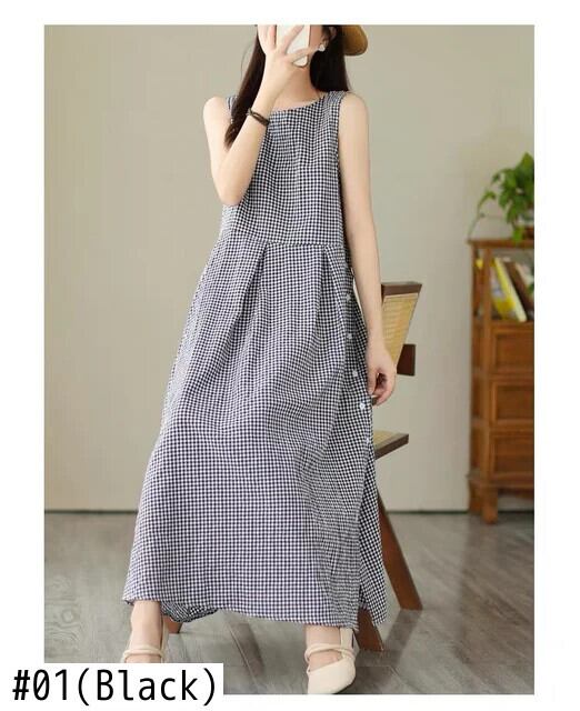 [EWQ] ホリデードレス マルオケージョンストラップチェック柄ノースリーブロングドレス レディース 2024春夏 16U8904 スプリング 春物 サマー 夏物