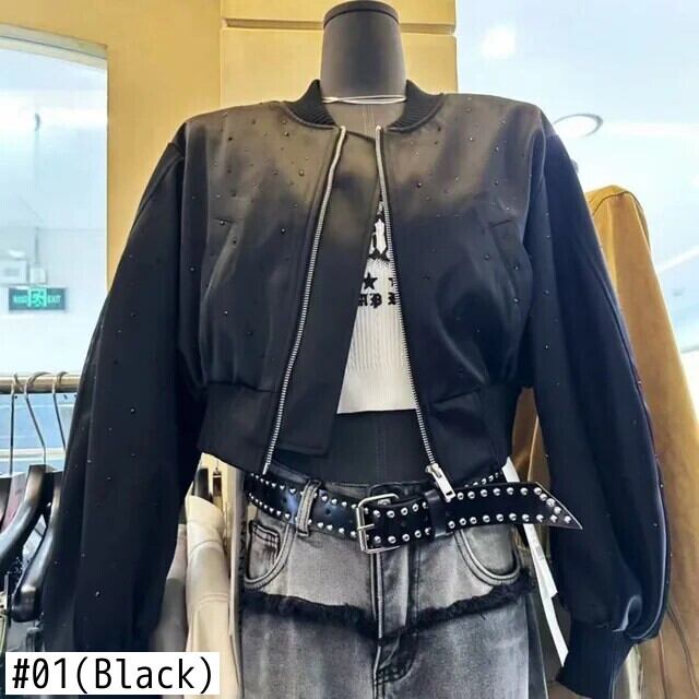 [EWQ] 長袖白アウタールーズコートビーズ美しいショートコート 2024 秋ジッパージャケット GZ212 ロング ホワイト オータム 秋物