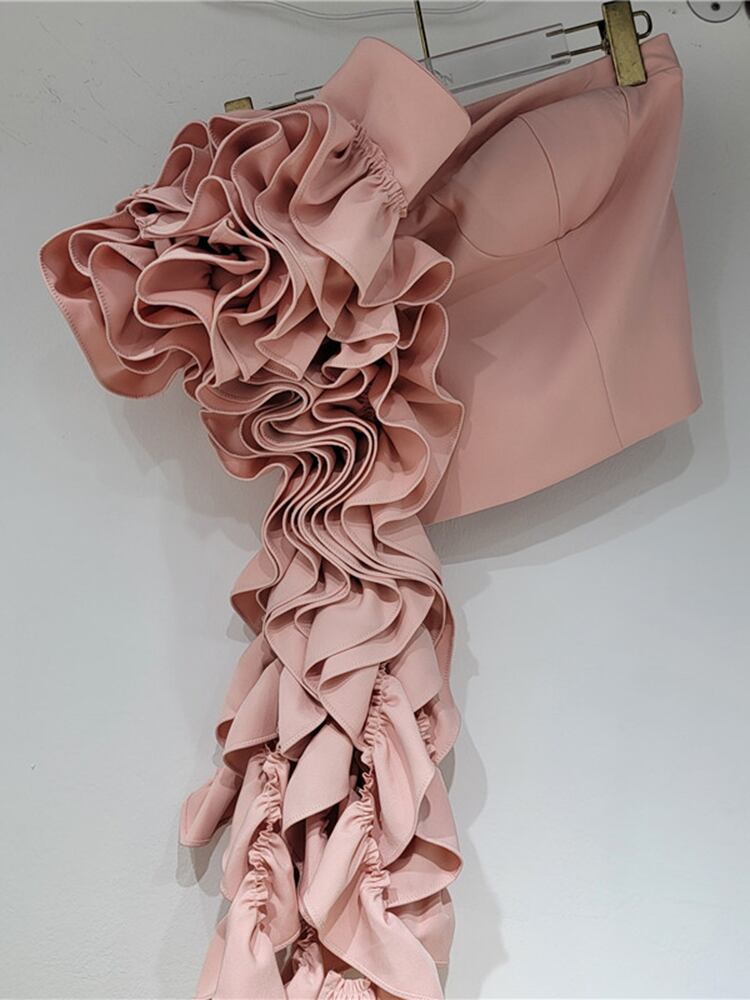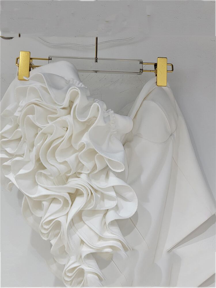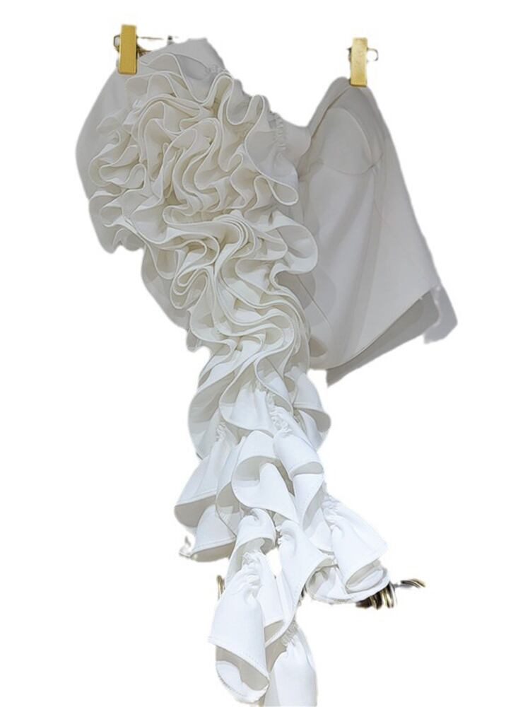 [EWQ] 3D フラワー Tシャツ レディース ソリッド サイド ジッパー スラッシュ ネック ストリート トップ 2024 夏 16O735 サマー 夏物 ソリッドカラー フラワーデザイン