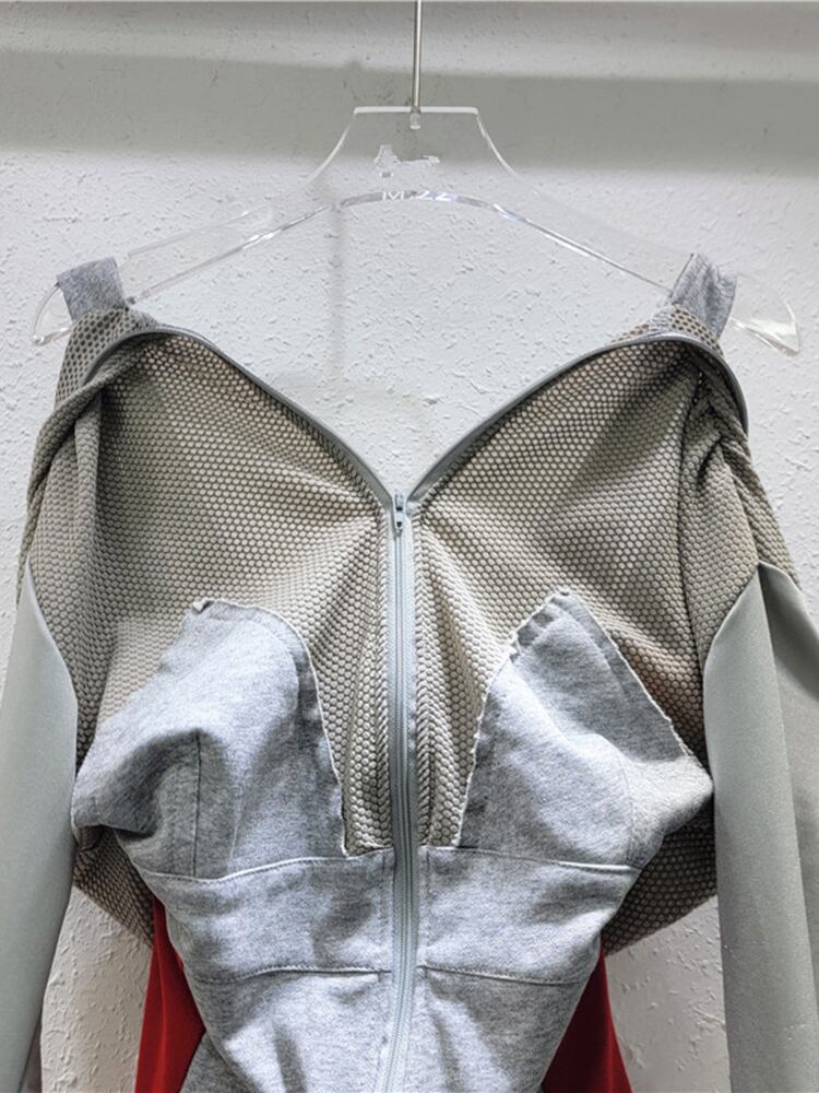[EWQ] フード付きサンスクリーンコートスリムジッパースプライシングコントラストカラートップ 2024 秋 16O728 オータム 秋物