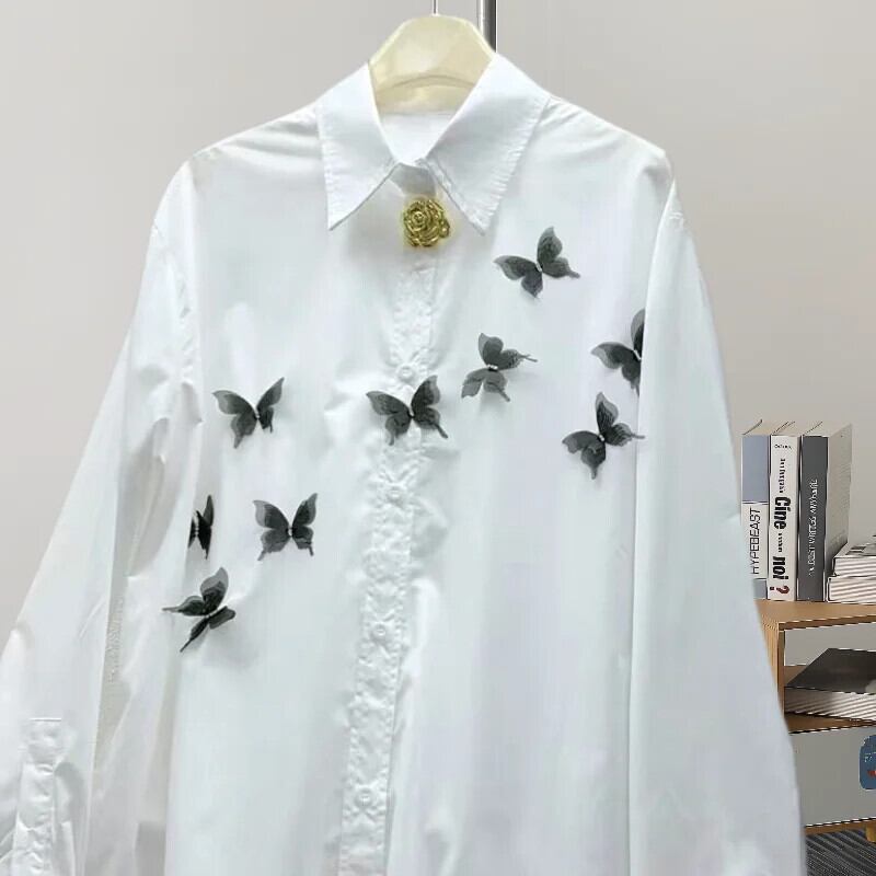 [EWQ] フルスリーブ ブラウス シングルブレスト バッファフライ レディ シャツ 美しい レディース 2024 秋 GZ296 オータム 秋物