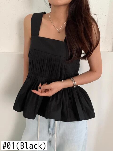 [EWQ] フリルスプライシングプリーツベストソリッドスイートスタイルミニマリストトップストップス 2024 夏 16O884 大人ガーリー スウィート キュート カジュアル サマー 夏物 ソリッドカラー