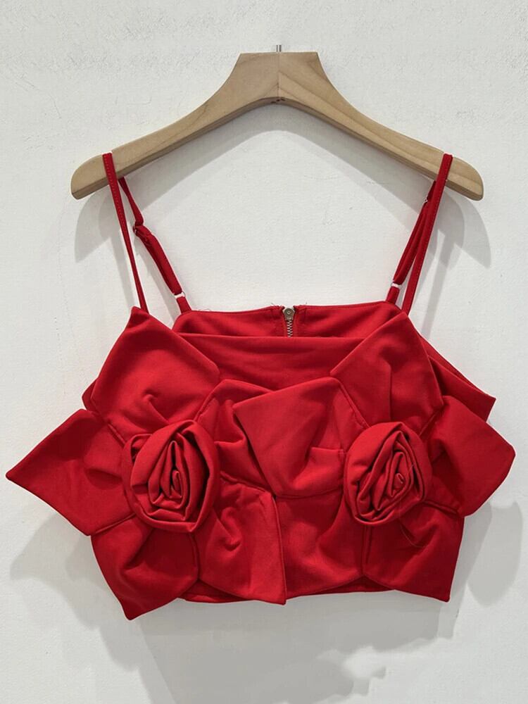 [Ewq] 3d フラワー スリング Voor Vrouwen モード バックレス ストリート エフェン リッツ Kleding Dames トップス 2024 Zomer Nieuwe 16o1013 フラワーデザイン
