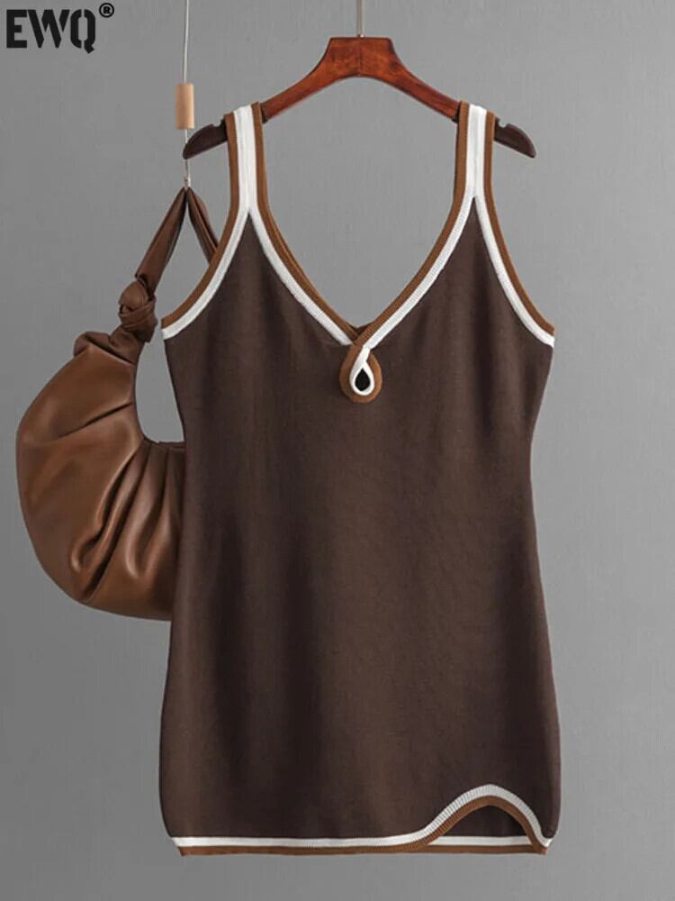 [Ewq] アメリカーンス スタイル V ハルス スリップ ドレス Uitgehold セクシー ミニ Jurken Mooie Dameskleding 2024 Herfst Nieuwe Gz529