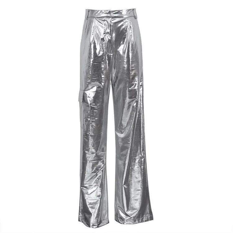 [Ewq] アメリカン ホット スタイル タイユ シルバー ウェイテス Bein Hosen Taschen ストリート Hosen für Frauen Herbst neue gz449