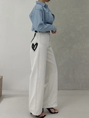 [Ewq] Liebe bedruckte ジーンズ ホース für Frauen hohe Taille los Mode vielseitige weibliche Hose Herbst neu 16 o945