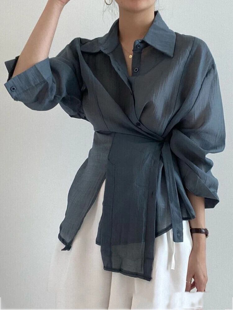 [Ewq] シックアンレゲルマリスト フラウエン ソリッド ゲラフテ タイユ ビューロ ダム ミニマリスト ische Bluse weiblich 2024 Herbst neu 16 o696 ソリッドカラー