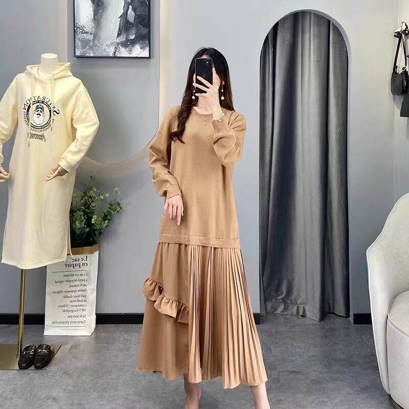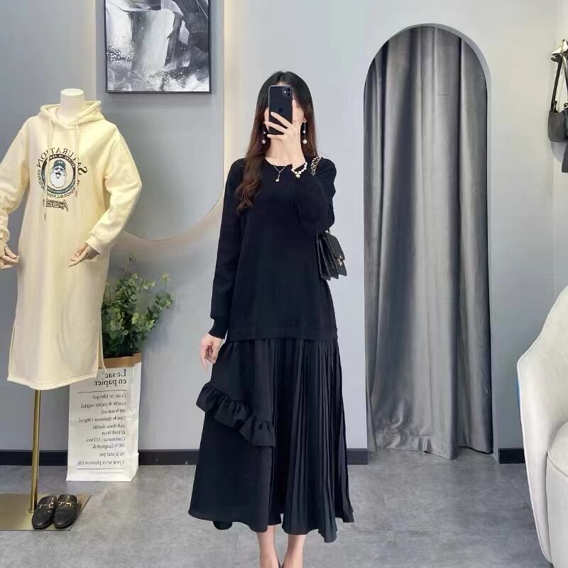 Ewq-フリルとステッチワンピースドレス,シックランウェイ,美しい,秋,16y684501,2024 パーティー