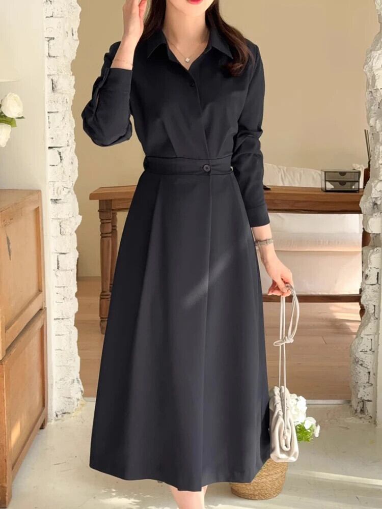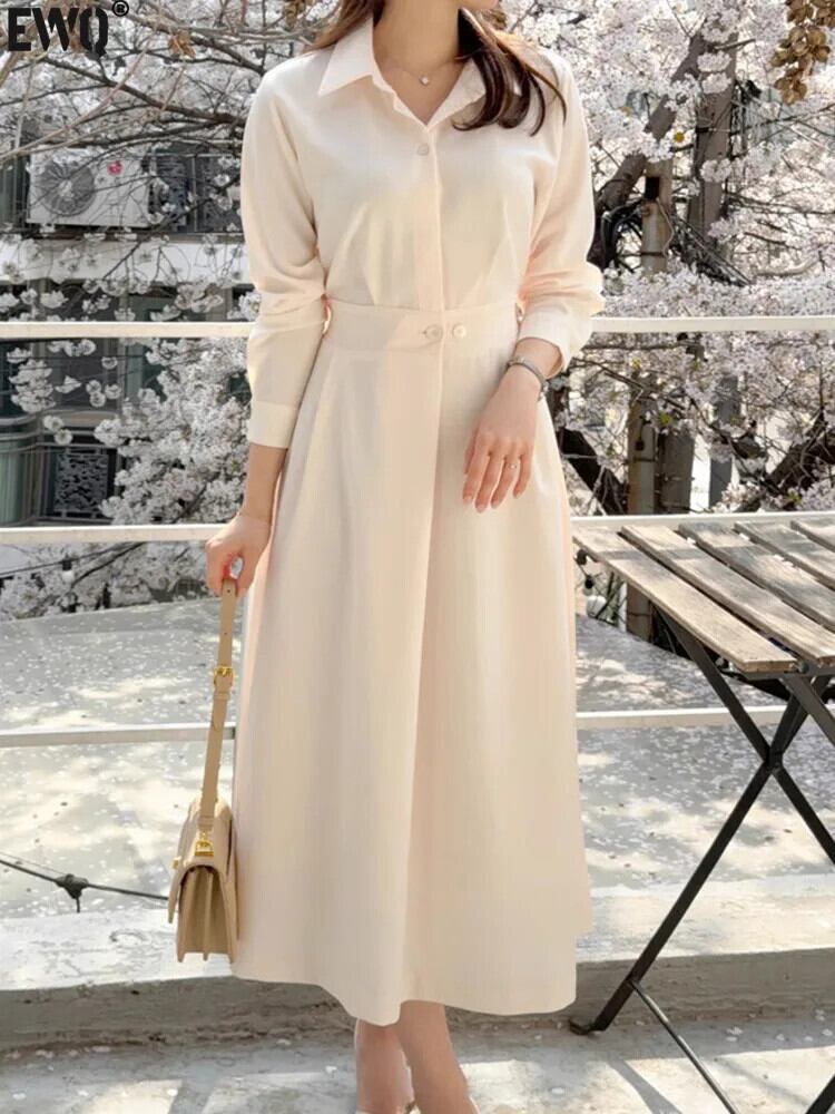 [Ewq] 気質アップ Eenvoudige Volledige Mouw シャツ Jurk Losse Stevige Jurken Mooie Dameskleding 2024 Herfst Nieuwe Mode 16o1150
