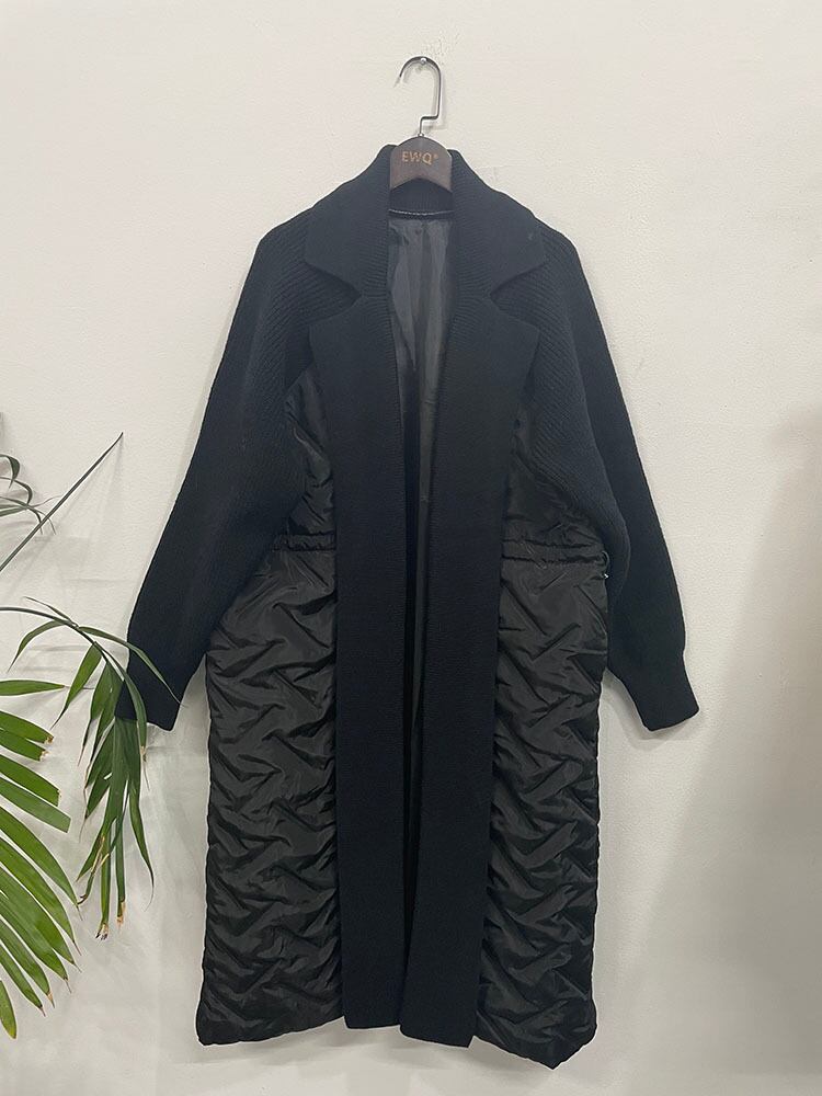 [Ewq] koreanischer Polo kragen Damen verdickte Strickjacke lange Baumwolle gepolsterte Mäntel gespleißt Strick プルオーバー Herbst Winter 16 u6088 ウィンター 冬物