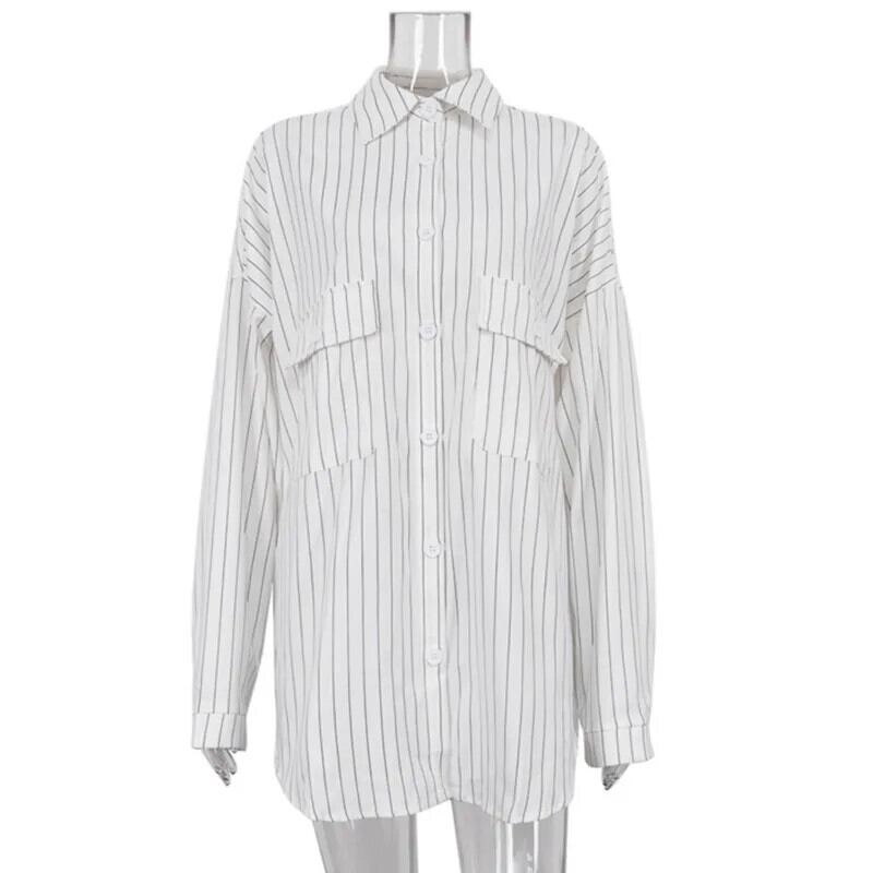 [Ewq] Zakken Ontwerp Turn-Down Kraag ブラウス Gestreepte Lange Shirts Eenvoudige Dameskleding 2024 Herfst Nieuwe Mode Gz525 シャツ