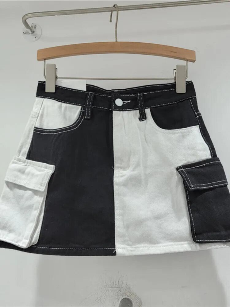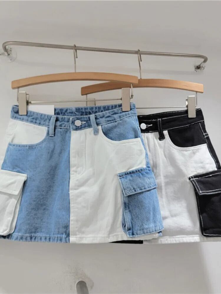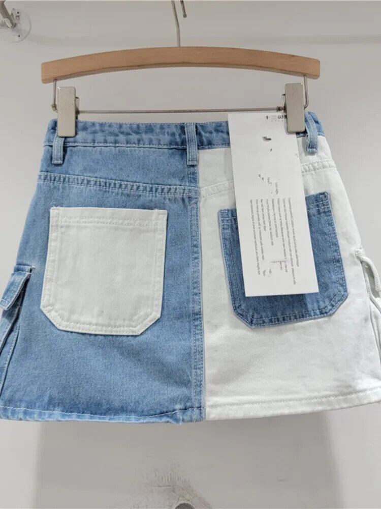[Ewq] アメリカン レトロ グロセ ターシェ パッチワーク デニム クルゼン ロック モード フルート アレ ペン ミニレッケ フラウエン 2024 フリューリング ゾンマー 6 u7801