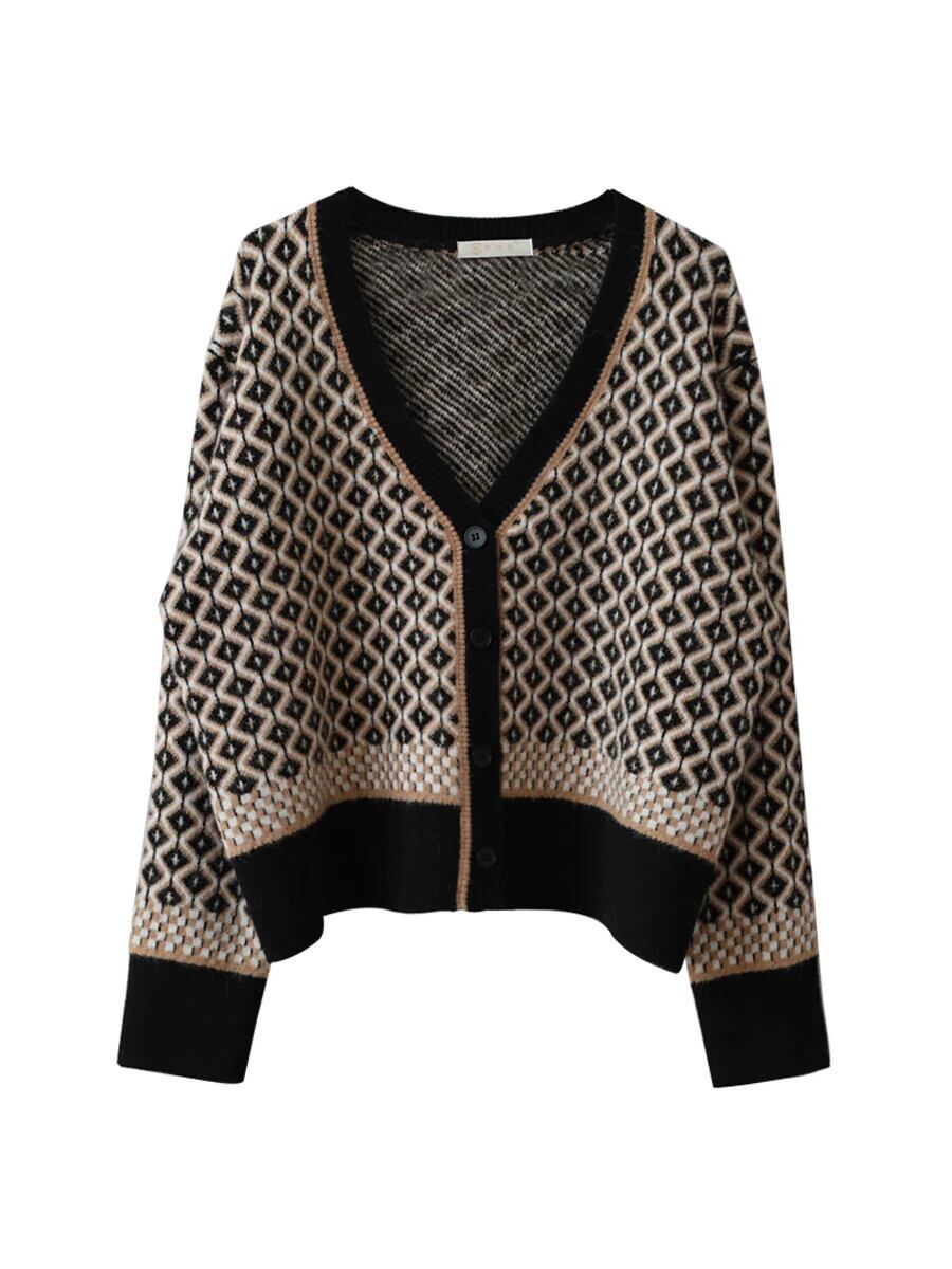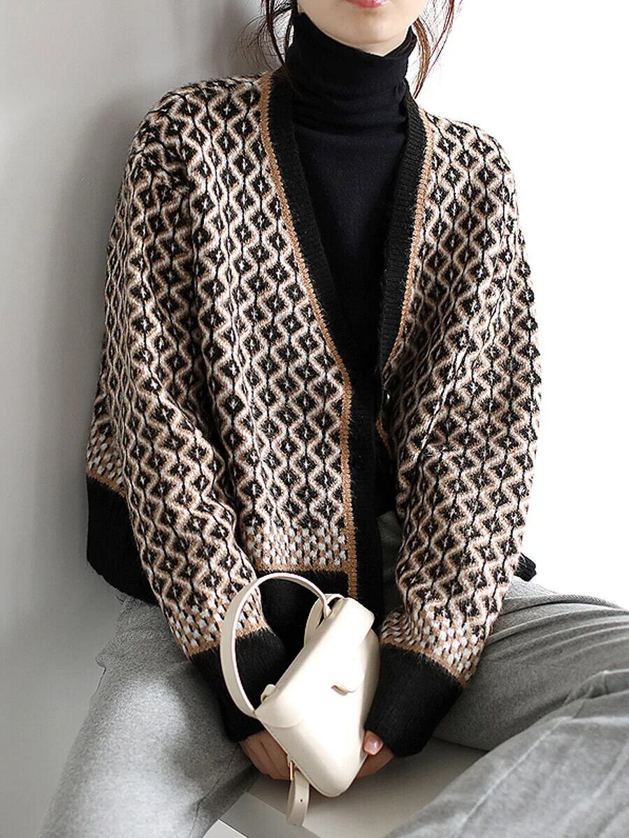 [Ewq] koreanischer Stil V-Ausschnitt Plaid einreihig los gestrickte プルオーバー Strickjacke schöne Frauen Kleidung Herbst neu gz395