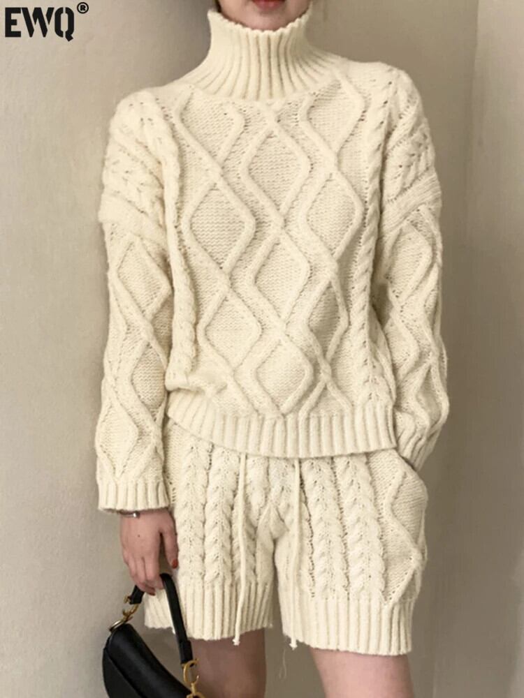 [Ewq] フラウエン ロール クラゲン プルオーバー ソリッド カリエルテ プルオーバー Taille elastische Twists Stricks horts 2024 Herbst Winter neu lässig 2 Stück Set 16 u3937 ウィンター 冬物 ソリッドカラー