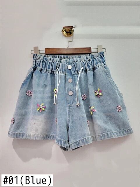 [EWQ] Mooie handgemaakte kleurrijke diamanten bezaaide kralen hoge taille wijde pijpen デニムショートパンツ damesbroek 2024 lente zomer 16U9050 ショーツ ブルマー