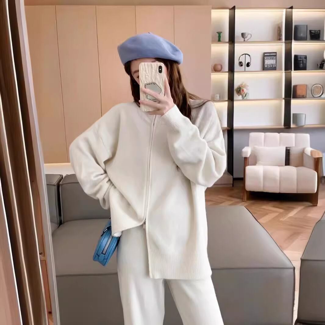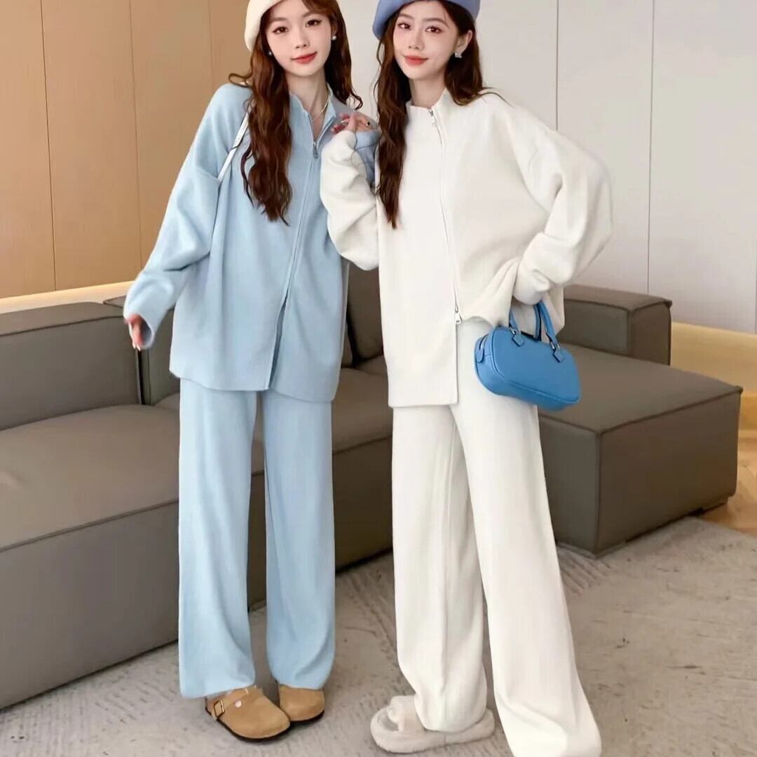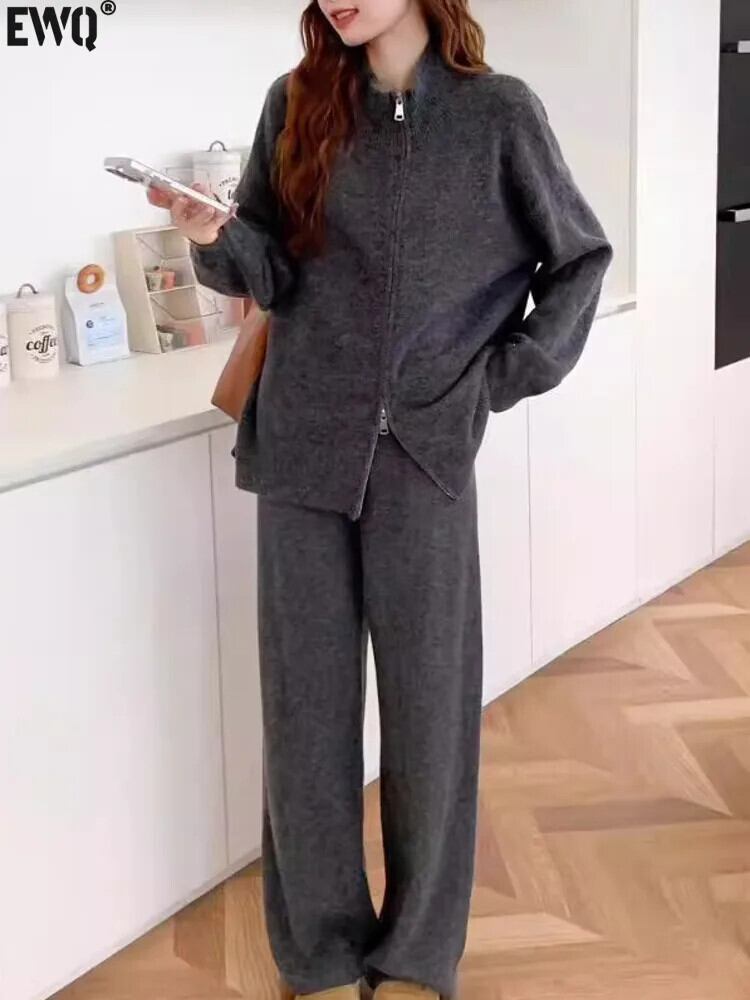 MooQ カーディガン デコントラクト avec fermeure éclair pour femme、プル エ パンタロン ラージ、スタイル ベーシック、アンサンブル 2 ピース、ヴェトモン ドートンヌ、ヌーボー、2024、GZ555 フェミニン