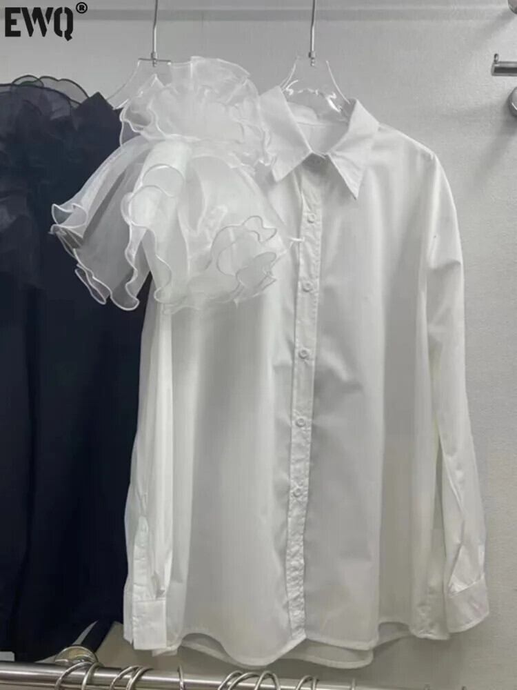 Ewq-ためミニマリスト白い長袖シャツ、ため3Dフラワーステム、オフィスシャツ、秋ブラウス、、gz122、