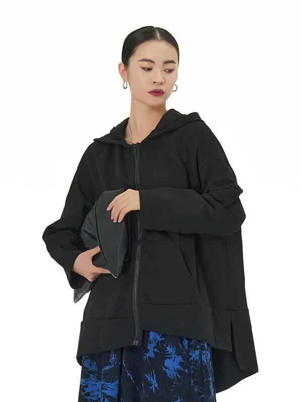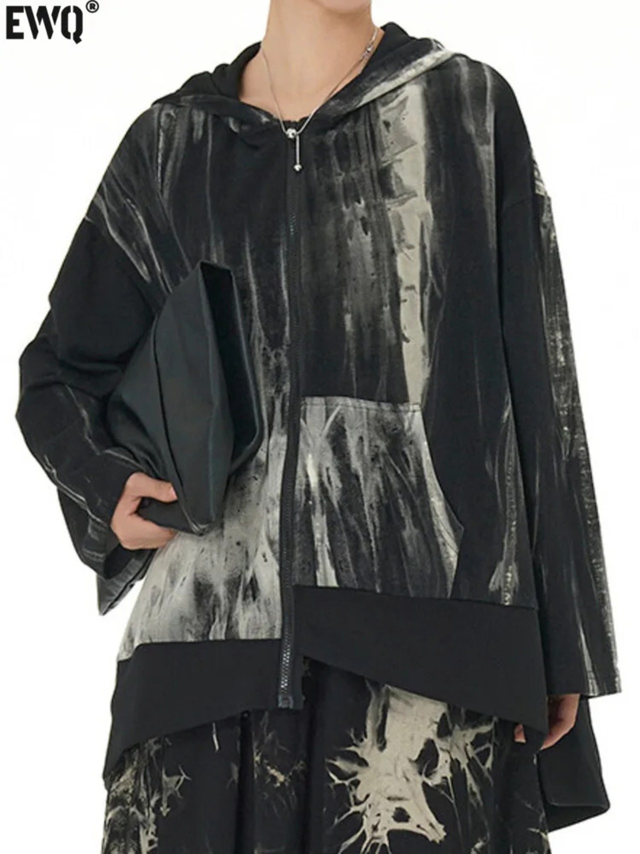 [Ewq] ストリート タイダイ Reiß verschluss Kapuze unregelmäßigen Mantel Frauen Taschen los Oberbekleidung Cooles Mädchen 2024 Herbst neue Flut gz281