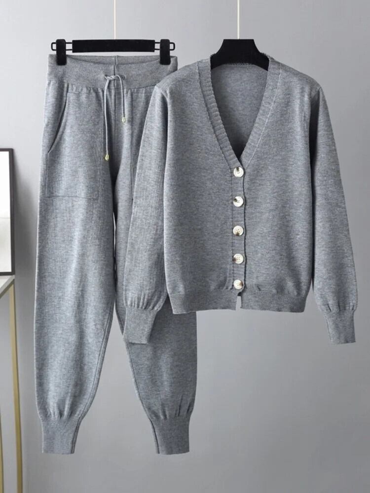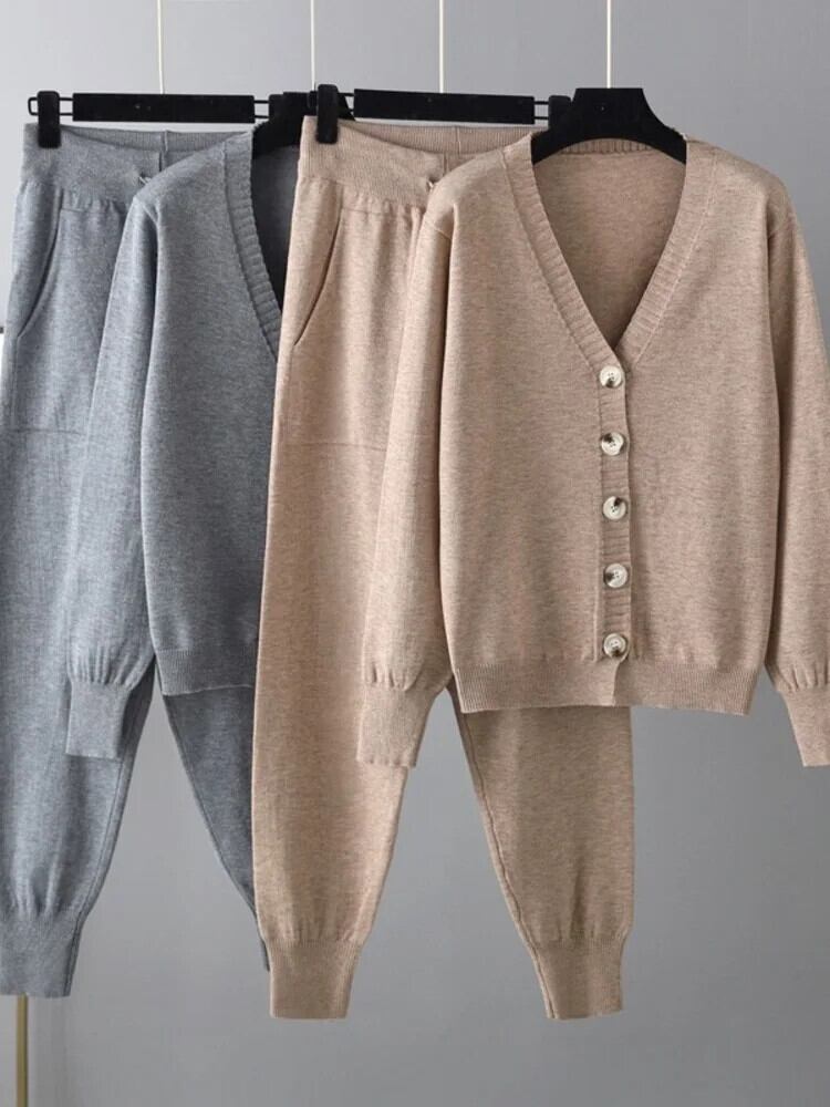 Ewq-レディースミニマリストスタイル長袖Vネックルーズセーター、ハイウエスト注目パンツ、ニット2ピースセット、秋冬、、gz144