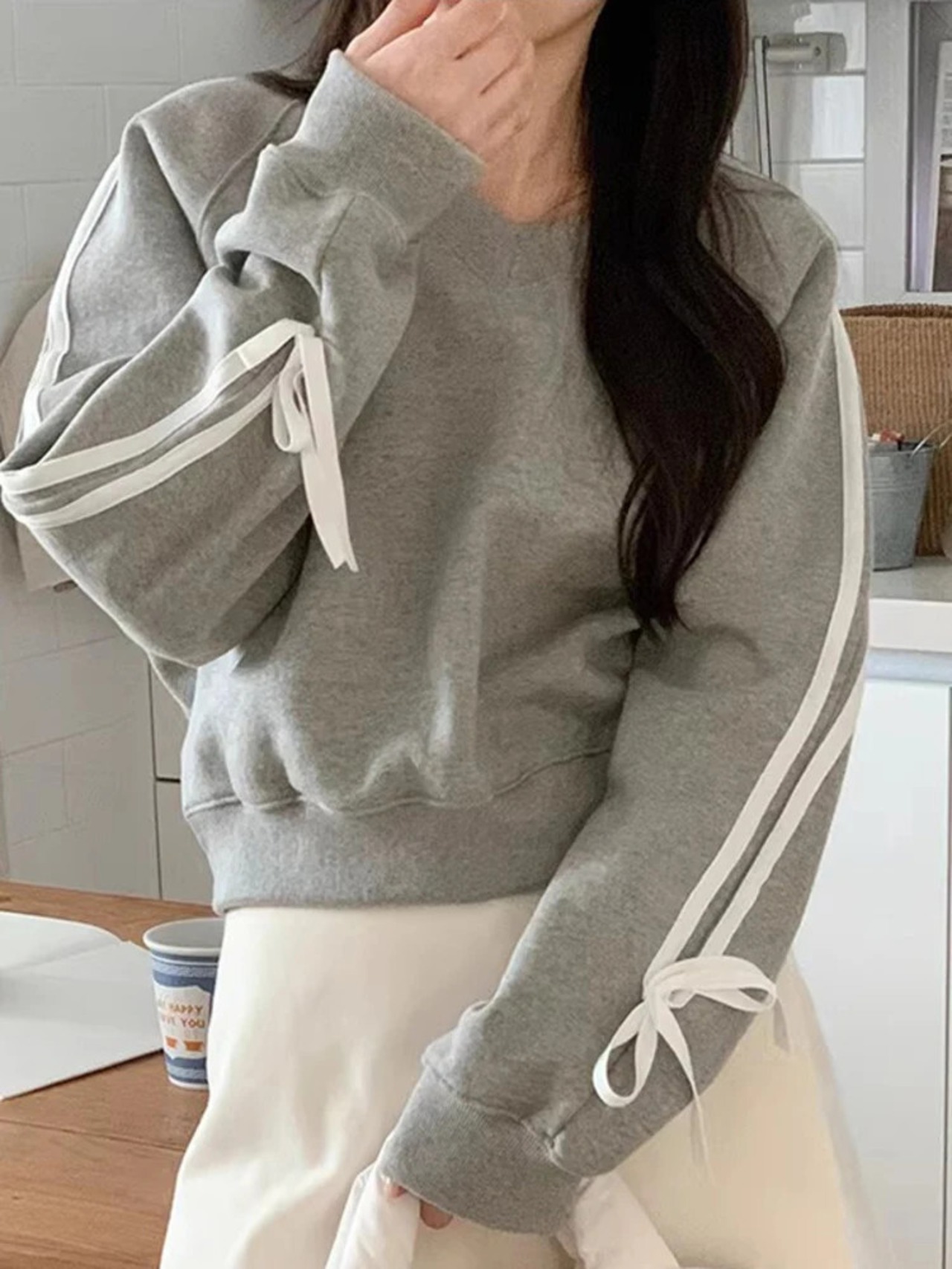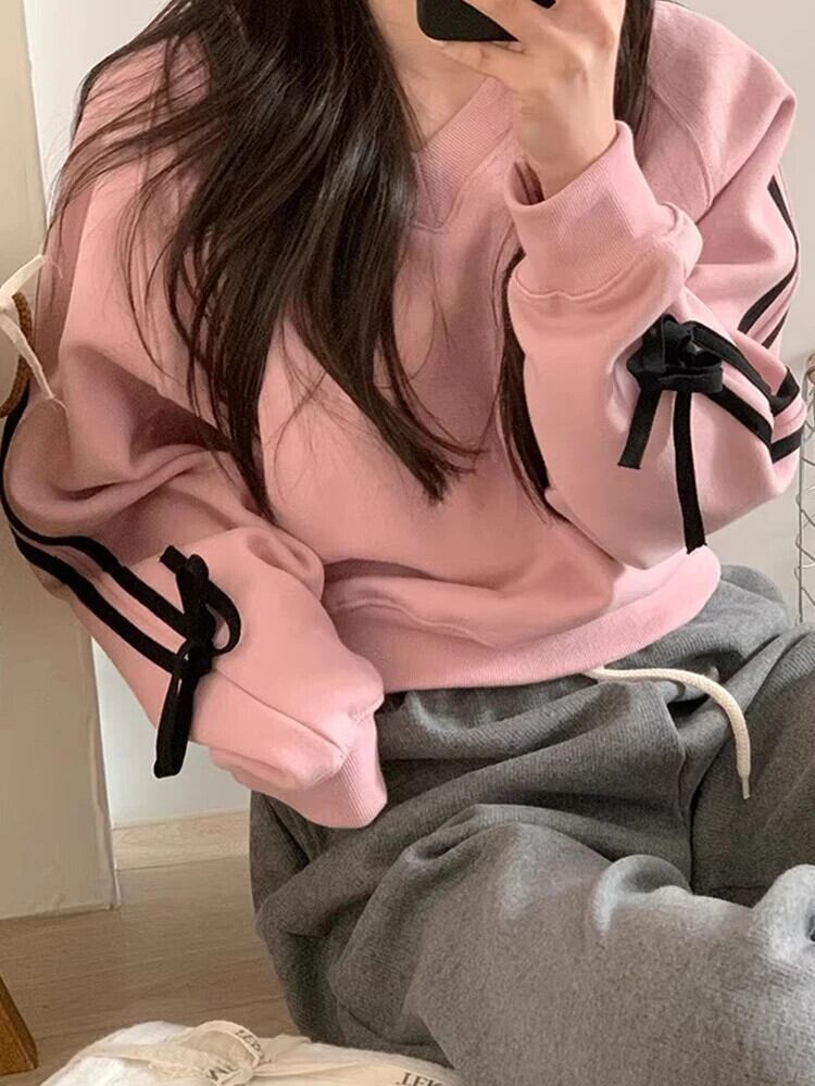 [Ewq] koreanischer Stil V-Ausschnitt Bogen loss alle Match スウェットシャツ Mode lässig Langarm Warm Top Frauen Frühling Herbst 16 u7564