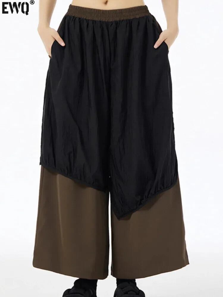 [EWQ] Americanischer -Stil、gespleißt、knöchelange Hose、kontrastierende Farben、Hose、Damenbekleidung、2024、Herbst、neue Mode、GZ576