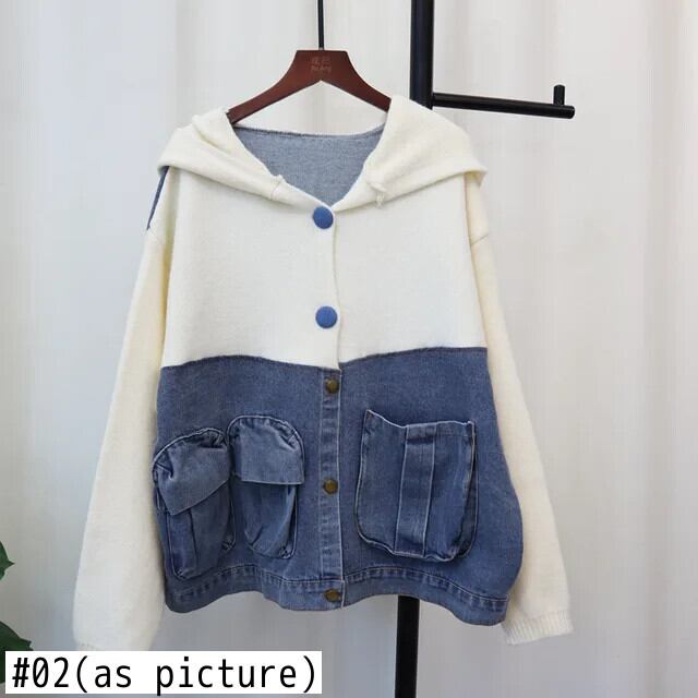 [Ewq] 韓国スタイル Kapuzen プルオーバー gespleißt デニム カーディガン Mäntel loss Damen bekleidung Herbst neue Mode 16 o1115