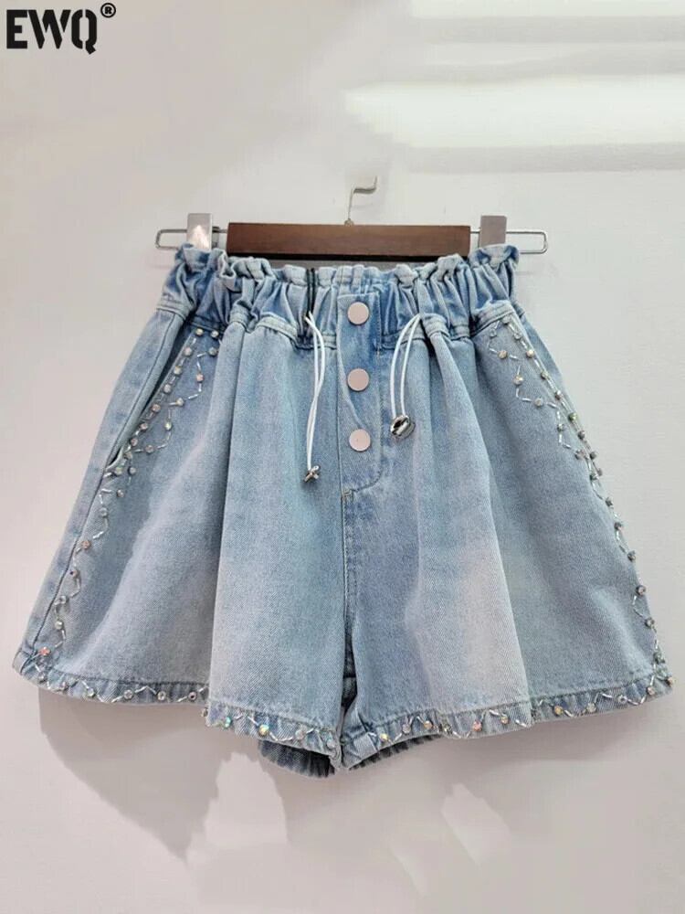 [Ewq] モード トレッククール ディアマント スタッズ Kraal Hoge Taille Losse デニム Wijde Pijpen ショートパンツ Voor Dames 2024 Lente Zomer 16u9049 ショーツ ブルマー
