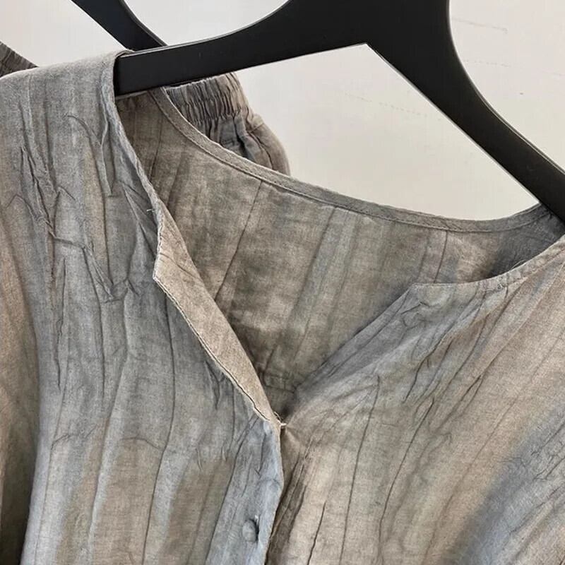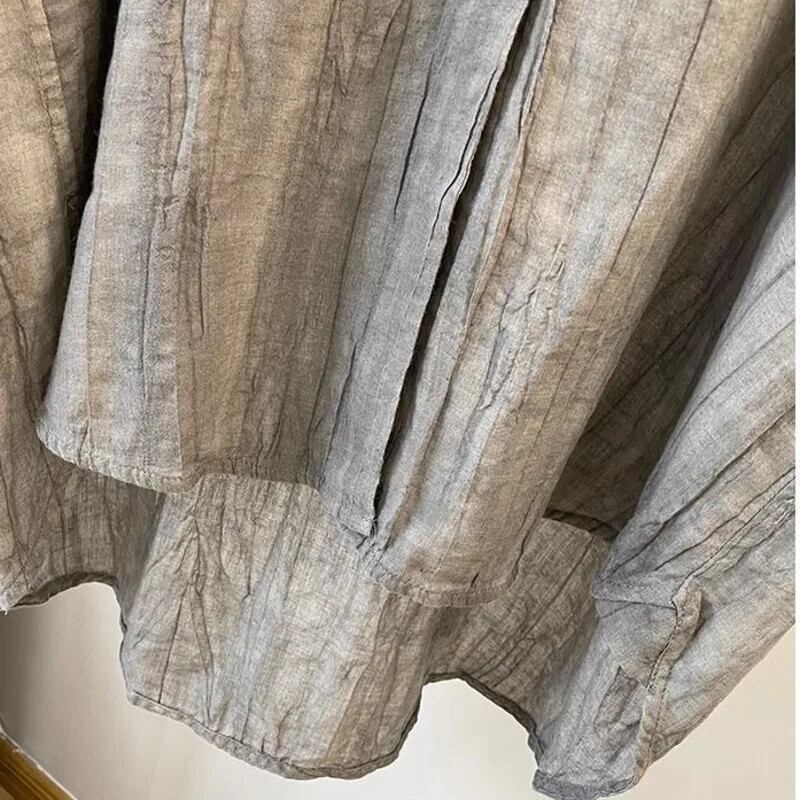 [Ewq] Frauen Bürohem den 2024 Herbst Baumwolle Leinen Bluse Graue Damen Kleid unregelmäßige Bluse Sommer GZ65