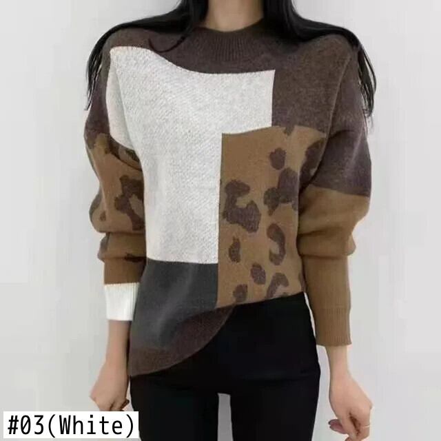 【Ewq】オー・アウスシュニット ランガルム コントラスト ファルベン レオパード プルオーバー ストリック プルオーバー lässig Frauen プルオーバー ウィンター Herbst neu 16 o1544 冬物