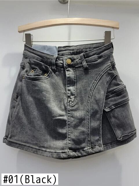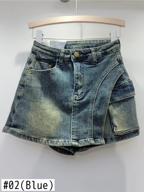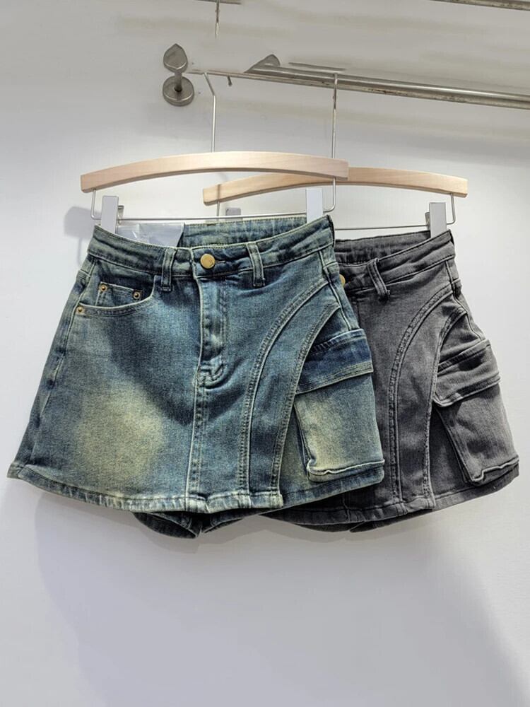 [EWQ] デニム ミニ ロック Für Frauen Taschen Mode Hohe Taille Kleidung Weibliche Röcke 2024 Sommer Neue 16O909