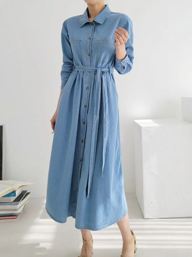 [EWQ] -モード、アインライヒヒ、ミット シュニュルング、デニム クライド、エレガント、レッシグ、すべてペンデン ランゲン クライデルン ファー ダーメン、2024、Frühling und Herbst、16U7550