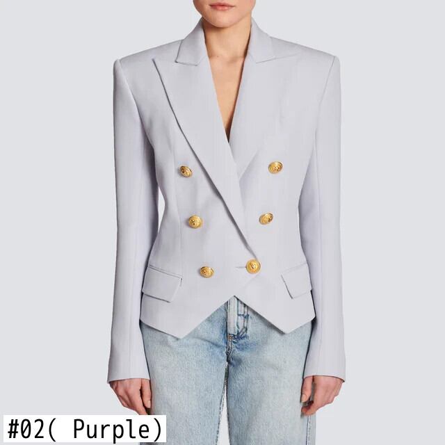 [EWQ]EuropäischeTrendIge Kleidung SchlankeBüroBlazerZweireihigeUnregelmäßigeSaumFrauen LilaMäntel2024HerbstAnzügeTops
