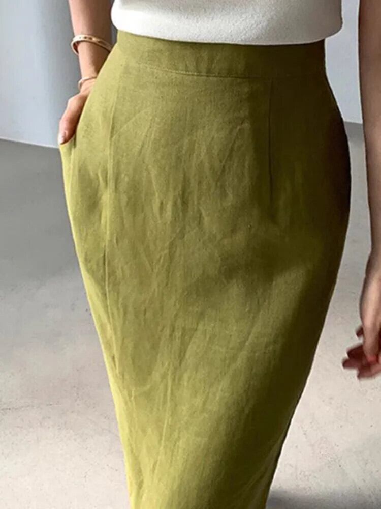 [Ewq] 音律 vielseitig einfarbig grün hohe Taille Gesäß gewickelt langen Rock für Frauen 2024 neuen Frühling Sommer 16 u9330