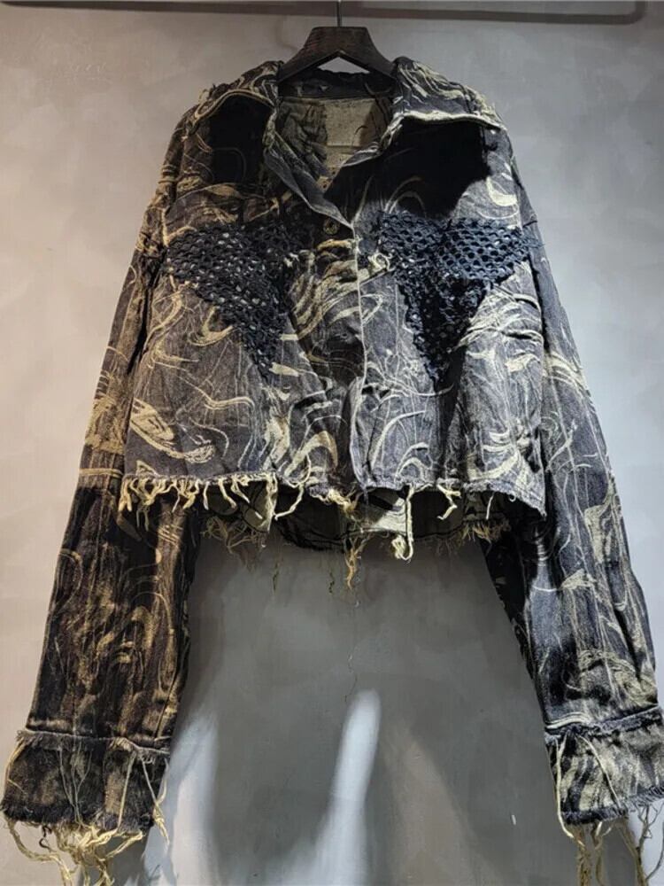 [EWQ] ストリート ダメージ パッチワーク ドラック デニム Mäntel Und Cargo Hosen Mode 2-teliges Set Frauen 2024 Herbst Neue Flut 16O1384