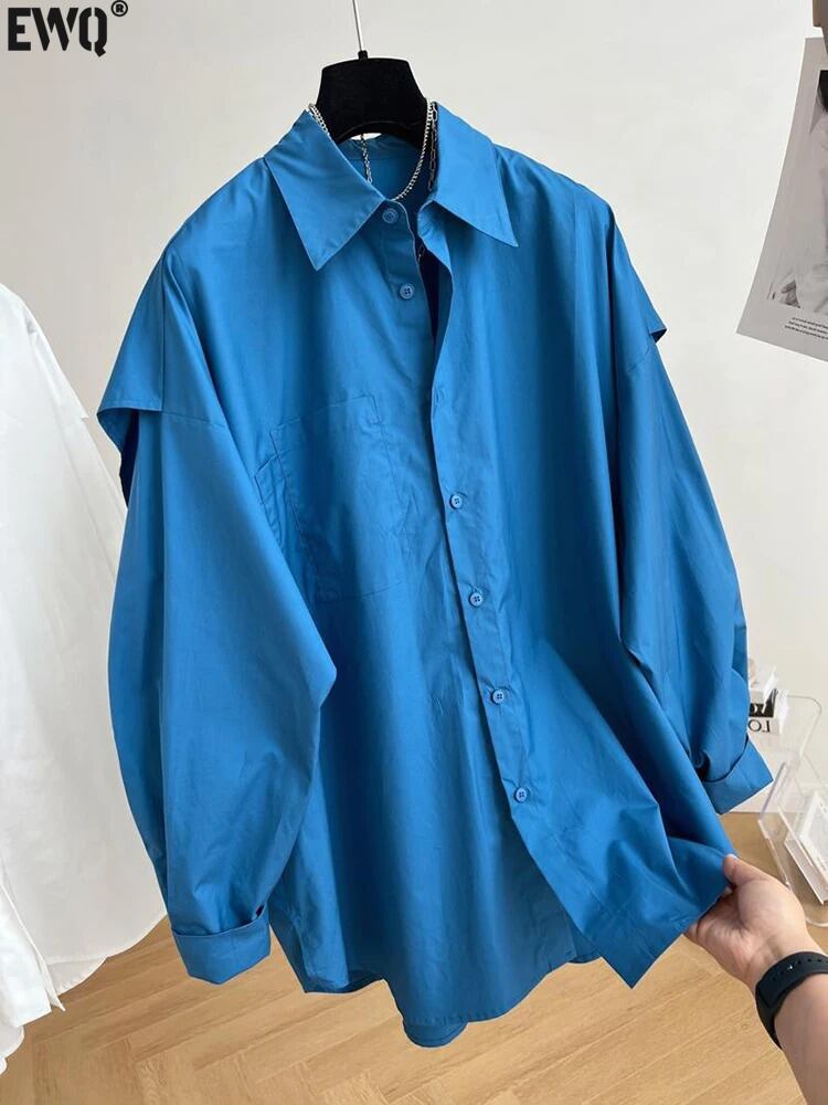 [Ewq] Mode Terug Gesplitst Shirt Voor Vrouwen Solide Veelzijdige シングルブレスト ロスネップ ツイード スタッケン ブラウス 2024 Zomer Nieuwe 16o651 ソリッドカラー
