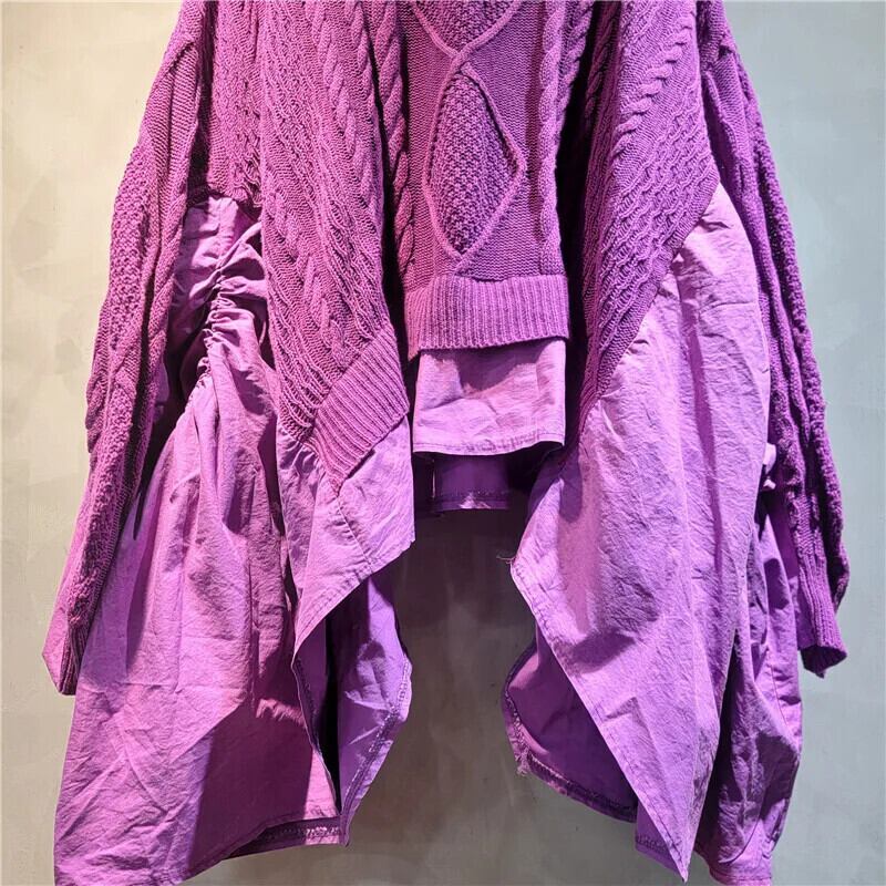 【EWQ】パッチワーク オンレゲルマティゲ ルーシュ フレールミュスムーウェン トゥルイ V-ハルス ロスダムス パールス トゥルイ トップス 2024 Herfst Nieuwe Mode 16O2314