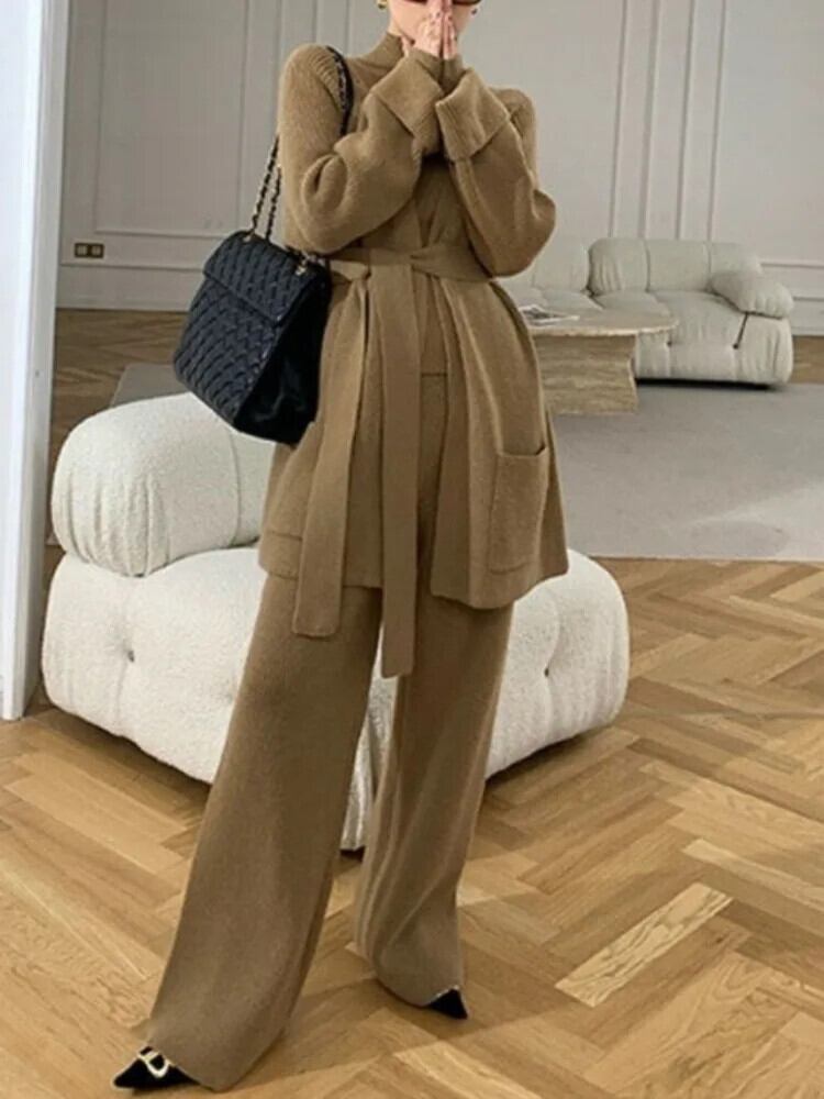 [EWQ] Rollkragenpullover und Bandage Strickjacke Hohe Taille Hose Frauen Set Kleidung 2024 Herbst Neue Mode 16O1702