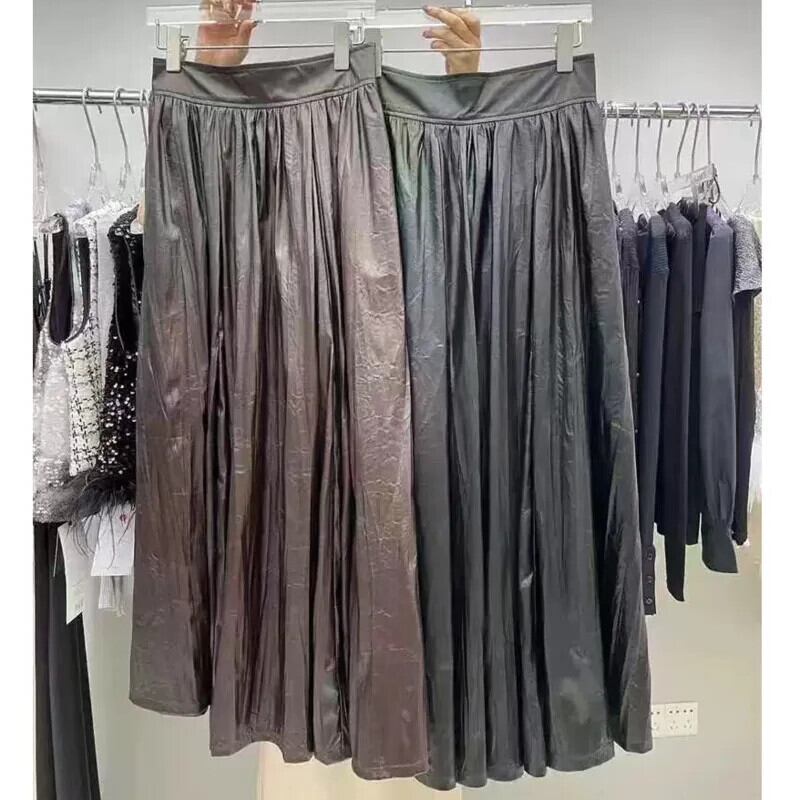 [Ewq] koreanisches Temperament hohe Taille weibliche Plissee Pu Leder röcke Solide All-Match Frauen langen Rock Herbst neu 16 o1851 ソリッドカラー