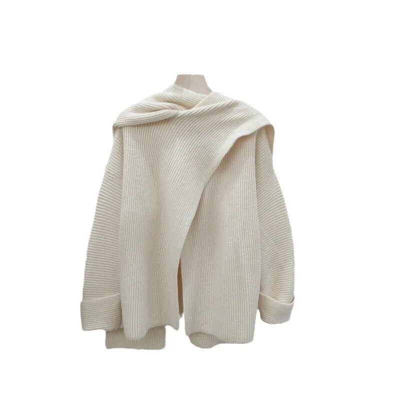 【EWQ】Unregelmäßige Schal Kragen Langarm Strickjacke Lose Alle-spiel Mode Frauen プルオーバーマンテル 2024 herbst Neue 16O2052