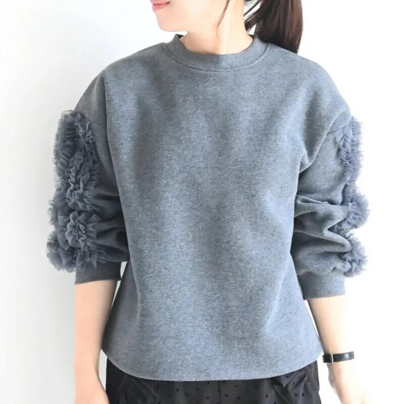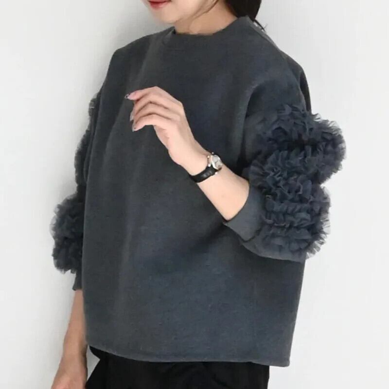 [Ewq] メッシュ ゲスプリット スウェットシャツ メット ランゲ ムーウェン エンハルス、ロスダムス、ディッケ ウィンタープルオーバー トップス 2024 Herfst 16o2410 冬物