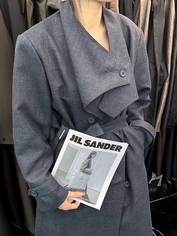 【EWQ】Minimalismus Langarm トレンチコート アウター Mit Gürtel Schwarz トップス frauen Windjacke Lose Outwear 2024 Herbst Neue 16O2204